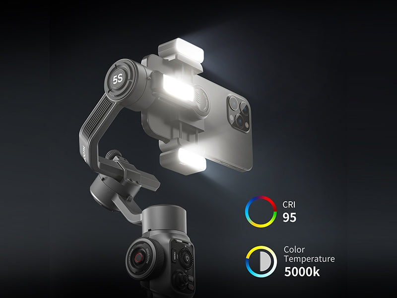 Une nouvelle lumière d’appoint avec une illuminance de pointe de 650 lux est ajoutée à l’axe d’inclinaison, faisant du SMOOTH 5S un appareil polyvalent pour mieux raconter votre histoire.