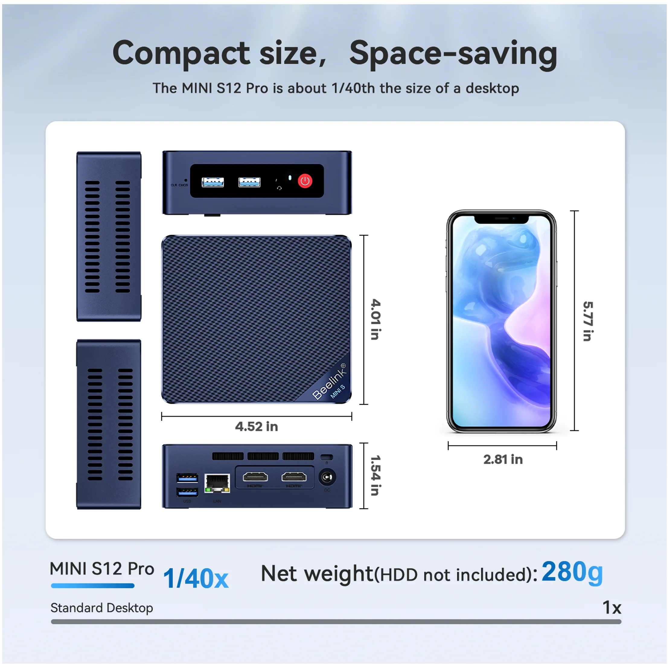 (1) Processeur Intel 12e Génération N100 : Le Beelink Mini S12 Pro avec Intel Alder Lake-N100 (4 cœurs, 3.4GHz Turbo) offre un streaming 4K puissant et des applications bureautiques en fonctionnement silencieux (<25dB).
